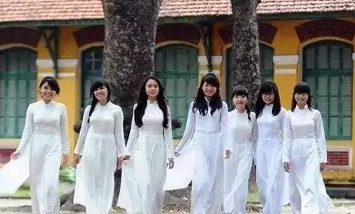 越南的女生校服白衣飄飄猶如仙女。校服款式很好地結合了越南的服飾特點,長衫長褲的校服很有禪意,令人清新無欲,認真學習。只是青春不能從無忌的笑臉中洋溢出來很可惜,被服裝緊緊包住了。亞洲人心理通常更沒有安全感一些,所以束縛拘束反倒是一種文化了。