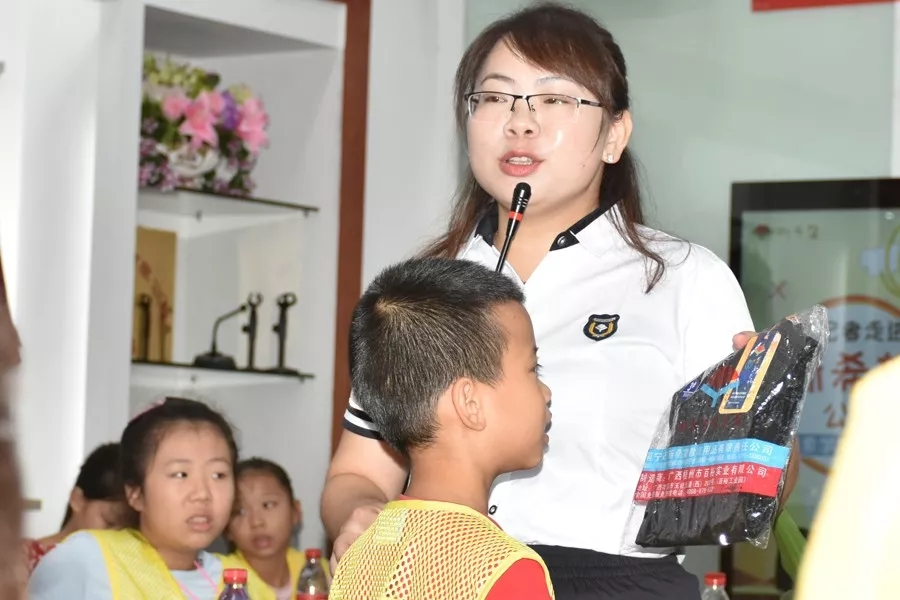 百裕集團營銷中心市場總監(jiān)曾凱蘭在活動中與小記者們交流互動,通過提問等形式,使同學們更深刻認識學生裝。小記者們踴躍參與,并將學到的知識點認真做好筆記。