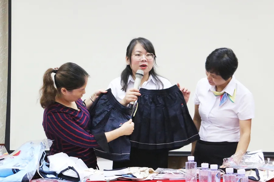 參觀的過程,小記者們對(duì)學(xué)生裝的生產(chǎn)有了一定的了解,但“小小服裝,大奧妙”,正版學(xué)生裝的奧妙在哪里?緊接著小記者與同行的家長(zhǎng)們以及新希望工作人員、百裕工作人員齊聚會(huì)議室,通過“做實(shí)驗(yàn)”、“答記者問”、“實(shí)物展示”等形式,對(duì)新希望學(xué)生裝的奧秘進(jìn)一步深入探索。