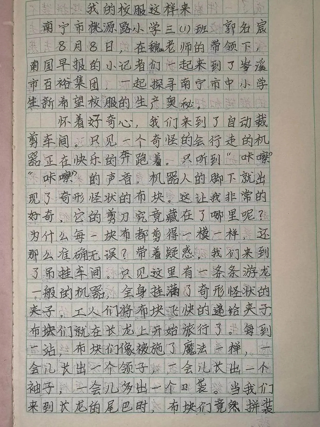 提起“新希望”學(xué)生裝,想必南寧市的中小學(xué)生們是再熟悉不過的了,這可是幾代南寧人童年與青春的回憶。但是關(guān)于“新希望”學(xué)生裝的生產(chǎn),估計(jì)就沒幾個(gè)人聽說過了!那么大家就跟隨小記者們一同去探究竟吧~