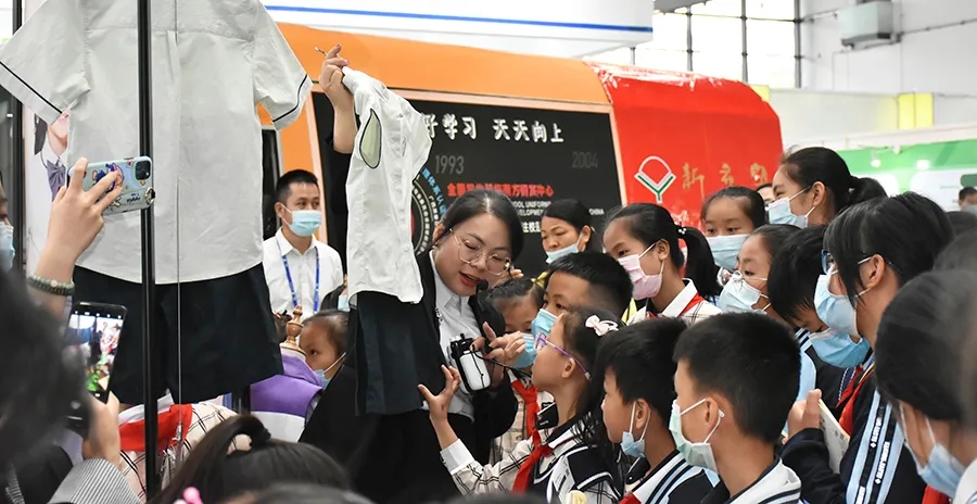 在為期三天的展會中,百裕集團響應(yīng)主辦方“綠色環(huán)?!辈颊固栒伲虻吞?、綠色環(huán)保布展方向看齊,打造沉浸式展廳,營造“校園時代”的校園場景,展示了2020款式系列服飾。別具一格的展位設(shè)計和沉浸式環(huán)境氛圍倍受領(lǐng)導們、市民及青少年小觀眾們關(guān)注,現(xiàn)場熱鬧非凡。