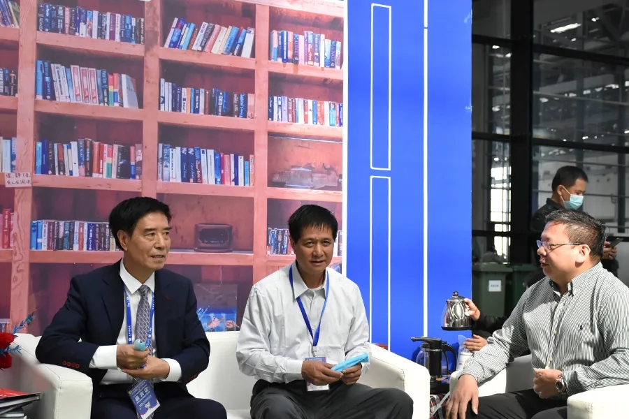 教育部關(guān)心下一代工作委員會常務(wù)副主任、中國教育裝備行業(yè)協(xié)會會長王富(左)、廣西教育技術(shù)與信息化中心副主任陳軍(中)