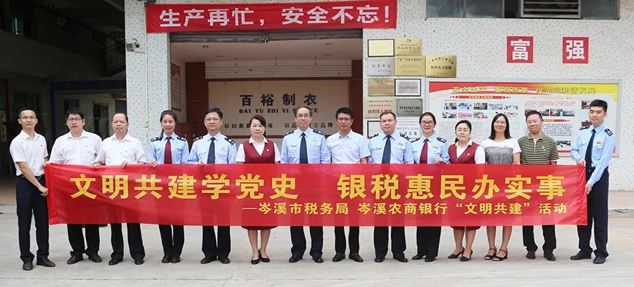 為充分發(fā)揮文明單位的示范輻射和帶動作用,推動全行黨員干部積極投身于學(xué)史踐初心,為民辦實事的主題活動中,4月13日上午,全國文明單位岑溪農(nóng)商銀行聯(lián)合岑溪市稅務(wù)局共同舉辦“文明共建學(xué)黨史 銀稅惠民辦實事”系列活動,組織黨員干部通過觀看視頻、黨史分享、知識問答等形式,加深對黨史知識的認(rèn)識和理解,堅定了共產(chǎn)主義信念,同時組織交流團對百裕集團生產(chǎn)中心進(jìn)行交流走訪,建言獻(xiàn)策。