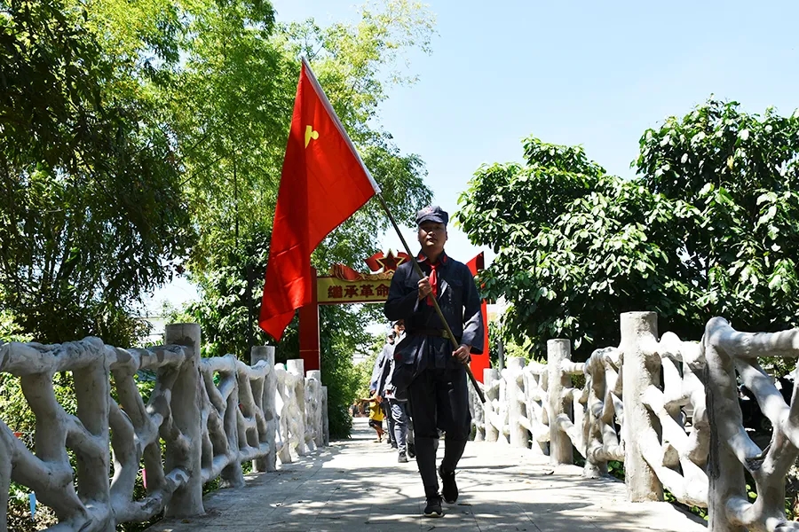 當天,參加活動黨員干部懷揣著敬慕與感恩之心,穿上紅軍服戴上紅軍帽,模擬紅八軍建制,編隊整訓,沿著革命先輩的足跡,徒步重走一次紅軍路,舉行簡單的授旗儀式后,學員們高舉旗幟,水隴徒步至甫茶,追憶紅軍革命精神,傳承紅色精神!