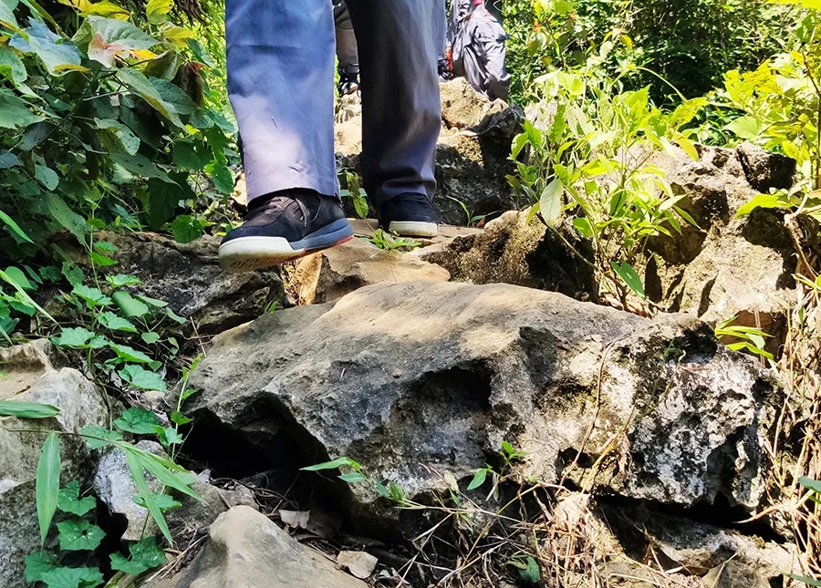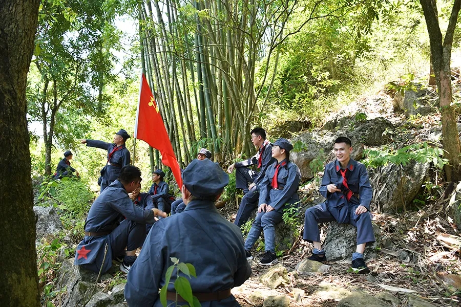 途中,黨員干部了解了鄧小平領導的紅八軍和左江革命委員會舉行反帝斗爭、張云逸同志在平馬勝利會師等龍州起義歷史故事,唱著紅歌,走在蜿蜒崎嶇的山路上,黨旗迎風飄揚,黨員干部體驗了革命的艱辛和困苦,同時感受紅軍無所畏懼、勇往直前的使命和擔當。