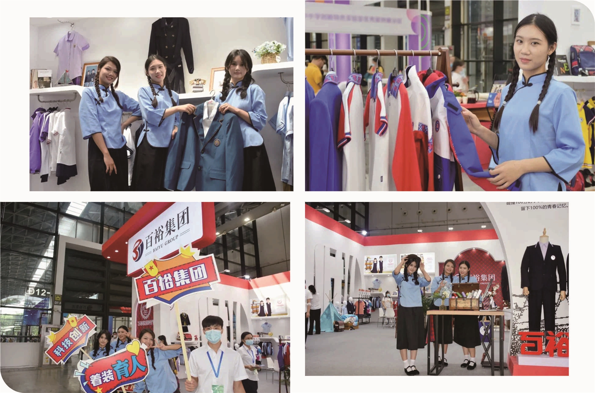 百裕集團在本次展會亮相的“百裕校園時代”中小學(xué)校園服飾、“愛樂學(xué)”園服、“喬派恩”職業(yè)裝系列,向參觀者展示了校園服飾與民族文化相結(jié)合的獨特魅力,不斷吸引了眾多參觀者駐足與關(guān)注。