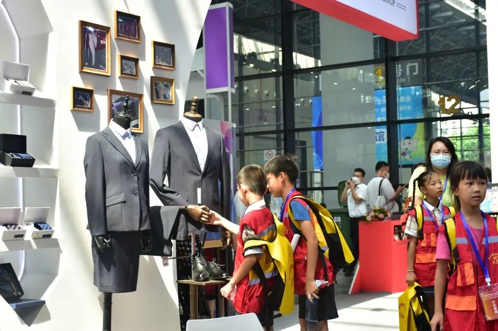 服飾展區(qū)吸引了小記者團的關(guān)注與了解,對服裝的制作、面料、配飾、洗滌護理等知識充滿好奇心并爭相提問,在百裕集團員工現(xiàn)場耐心解說下,小記者們收獲滿滿!
