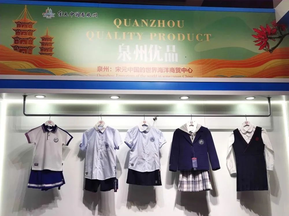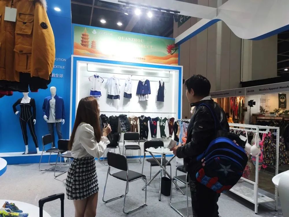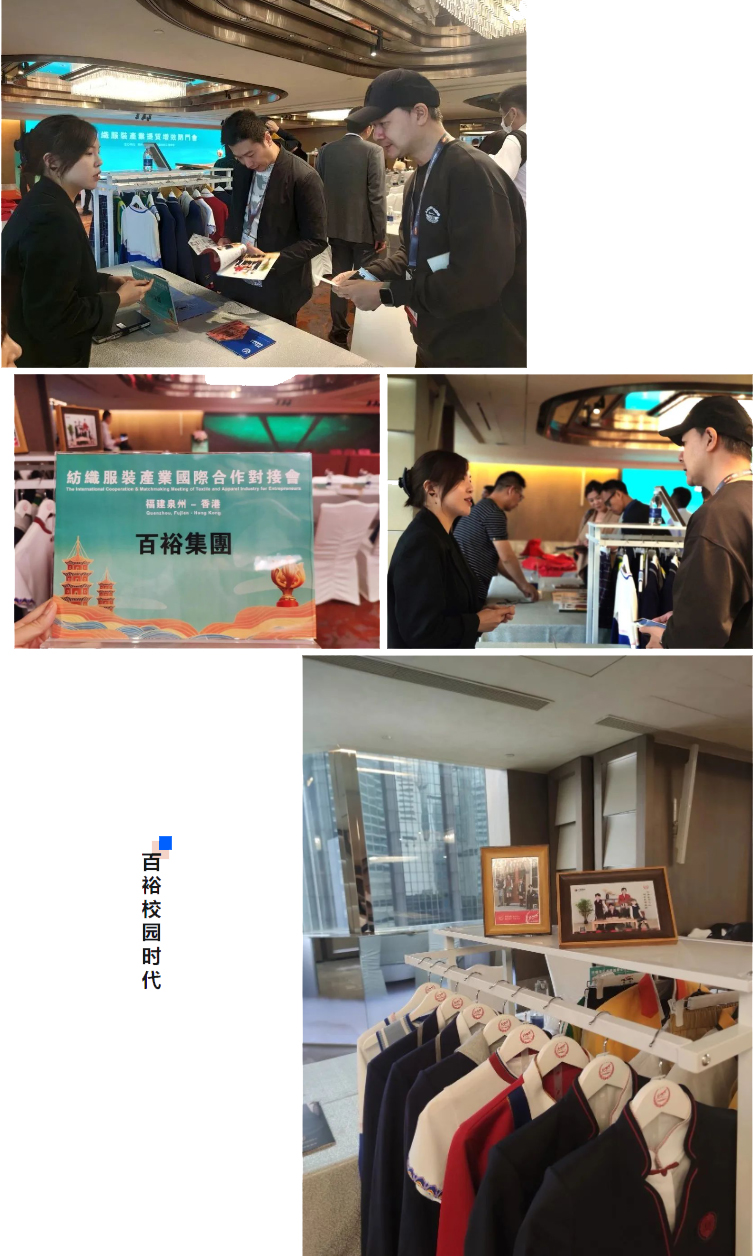 百裕校園時(shí)代精品服飾亮相紡織服裝產(chǎn)業(yè)國(guó)際合作對(duì)接會(huì)會(huì)場(chǎng),百裕校園時(shí)代校園服飾以“科技創(chuàng)新、著裝育人、呵護(hù)明天、文化傳承”為品牌理念;此次展示的精品服飾融入了民族文化元素,科技面料及工藝、時(shí)尚流行元素等,向參觀者展示了校園服飾的獨(dú)特魅力,不斷吸引了眾多參觀者駐足與關(guān)注。受到廣大觀眾的與閩港兩地的政商代表們進(jìn)行深入交流,攜手探索紡織產(chǎn)業(yè)的新格局、新生態(tài),攜手合作共謀發(fā)展。