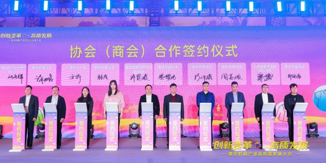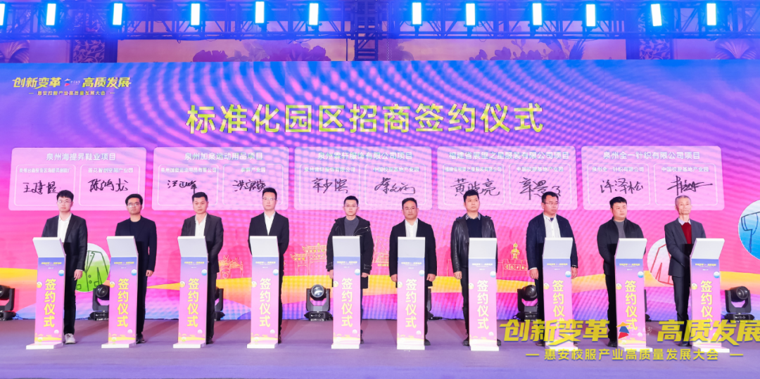 本次活動在中國教育裝備行業(yè)協(xié)會、中國教育后勤協(xié)會的指導(dǎo)下,由中共惠安縣委、惠安縣人民政府主辦?,F(xiàn)場啟動校服產(chǎn)業(yè)高質(zhì)量發(fā)展大會系列活動,表揚(yáng)并授牌惠安縣校服行業(yè)經(jīng)濟(jì)貢獻(xiàn)十佳企業(yè)(2022-2023年度),舉行校服行業(yè)企業(yè)家捐贈儀式和簽約儀式;縣工信商務(wù)局推介標(biāo)準(zhǔn)化園區(qū)并解讀校服產(chǎn)業(yè)惠企政策,縣校服協(xié)會發(fā)布校服高質(zhì)量發(fā)展倡議書。此外,行業(yè)協(xié)會、院校專家、校服企業(yè)有關(guān)代表以“惠安校服產(chǎn)業(yè)高質(zhì)量發(fā)展”為主題作交流發(fā)言;現(xiàn)場通過惠安校服產(chǎn)業(yè)發(fā)展宣傳片和校服品牌展示秀展現(xiàn)惠安校服產(chǎn)業(yè)發(fā)展現(xiàn)狀。