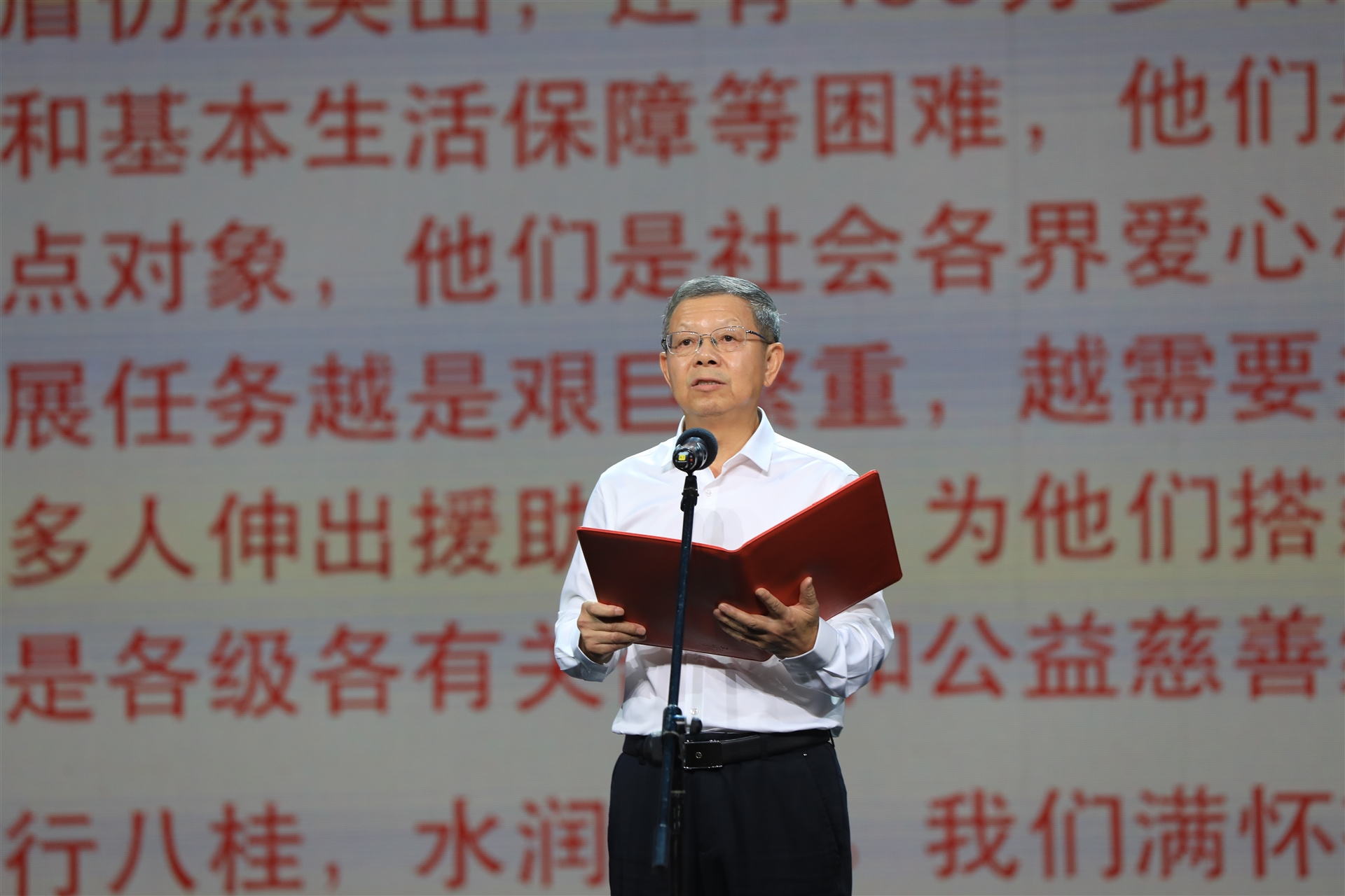 廣西慈善總會(huì)會(huì)長、自治區(qū)政協(xié)第十一、十二屆原副主席劉正東宣讀慈善倡議書