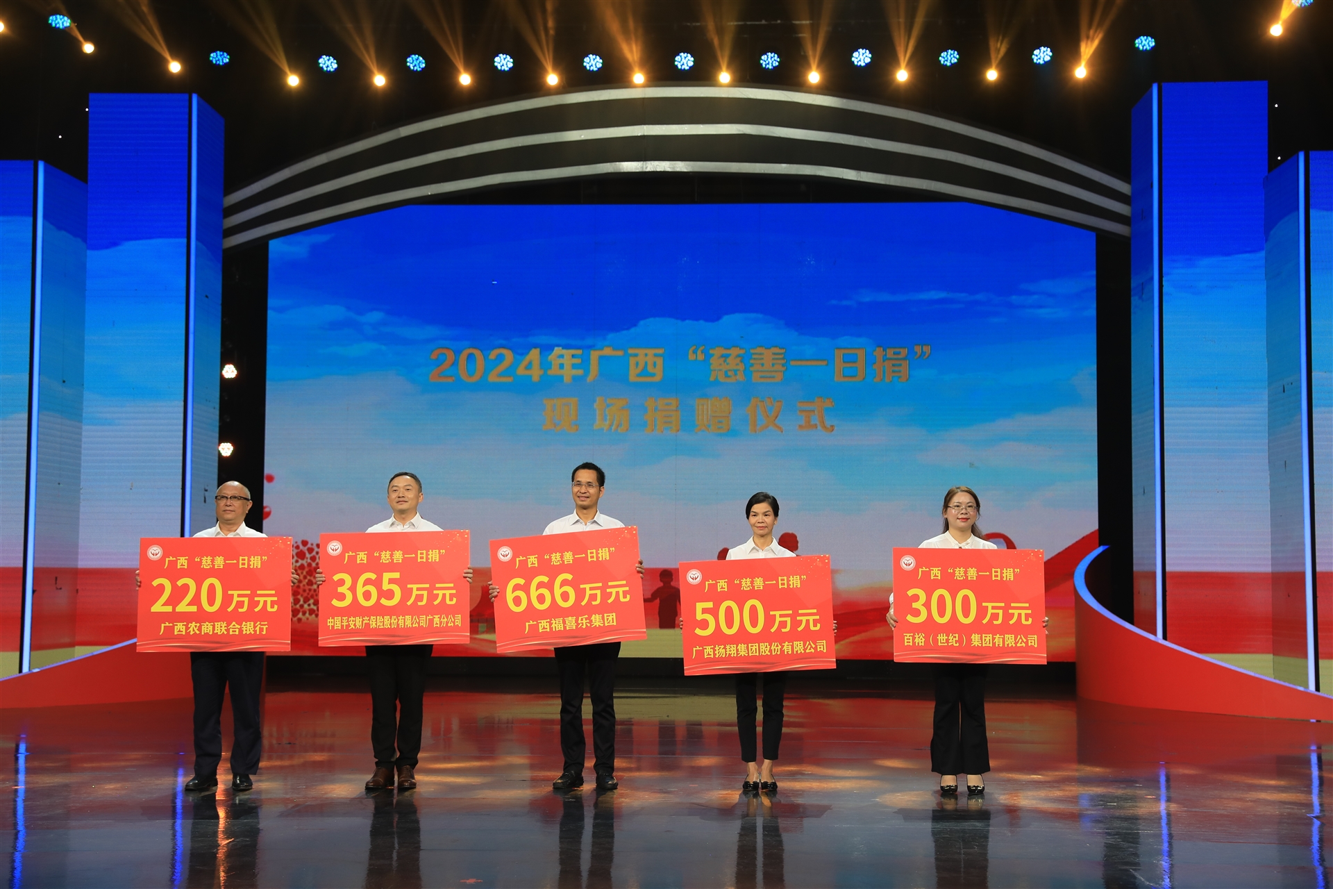 9月5日是我國第九個(gè)“中華慈善日”,在這個(gè)充滿愛與希望的日子里,百裕集團(tuán)積極參與南寧市民營企業(yè)家聯(lián)合會(huì)發(fā)起的廣西“慈善一日捐”捐贈(zèng)活動(dòng),并向廣西慈善總會(huì)捐款300萬元!百裕集團(tuán)用自己的實(shí)際行動(dòng)為慈善公益事業(yè)盡力,彰顯了無私奉獻(xiàn)的大愛情懷,傳遞了正能量,為廣西慈善扶貧救助事業(yè)奉獻(xiàn)愛心,助力新時(shí)代壯美廣西美好家園的建設(shè)。中華慈善日,不僅僅是一個(gè)紀(jì)念日,更是一個(gè)行動(dòng)的號(hào)角,召喚著我們每個(gè)人都投身慈善事業(yè)中,用愛去溫暖世界,用善去傳遞希望。9月5日晚,由自治區(qū)民政廳、廣西慈善總會(huì)在廣西廣播電視臺(tái)舉行的以“崇德向善 依法興善”為主題的第九個(gè)“中華慈善日”主題宣傳暨廣西“慈善一日捐”現(xiàn)場捐贈(zèng)儀式上,自治區(qū)民政廳黨組書記、廳長黃武海,廣西慈善總會(huì)會(huì)長、自治區(qū)政協(xié)第十一、十二屆原副主席劉正東等領(lǐng)導(dǎo)出席活動(dòng)。