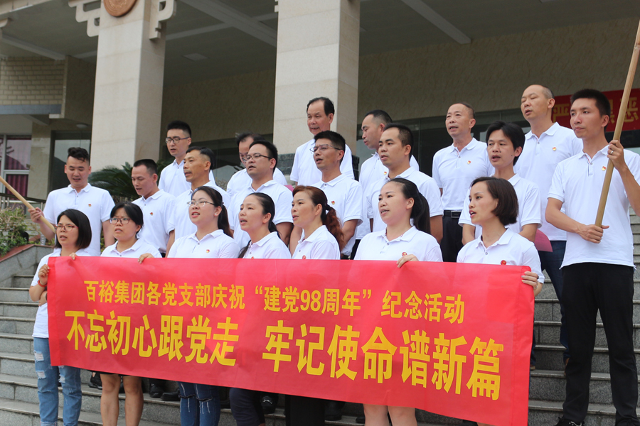 今年是中國共產(chǎn)黨成立98周年,為隆重紀念黨的生日,進一步引導(dǎo)集團全體黨員干部重溫黨的光輝歷史,繼承和弘揚黨的優(yōu)良傳統(tǒng),激勵廣大黨員干部進一步堅定信心、振奮精神、砥礪奮進,努力開創(chuàng)集團黨建工作新局面。在七 · 一建黨節(jié)來臨之際,百裕集團積極組織各黨支部,開展“慶祝建黨98周年”以“不忘初心跟黨走,牢記使命譜新篇”為主題的活動。