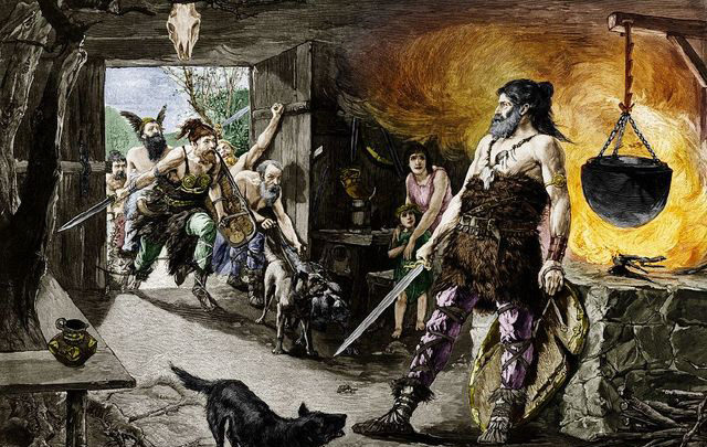 公元前6世紀(jì)左右,插畫,日耳曼人。關(guān)于領(lǐng)帶的起源一種傳說認(rèn)為,領(lǐng)帶最早起源于日耳曼,日耳曼人居住在深山老林里,茹毛飲血,披著獸皮取暖御寒,為了不讓獸皮掉下來,他們用草繩扎在脖子上,綁住獸皮.這樣一來,風(fēng)也不能從頸間吹進去,既保暖以防風(fēng),后來他們脖子上的草繩被西方人發(fā)現(xiàn),逐步完善成了領(lǐng)帶。