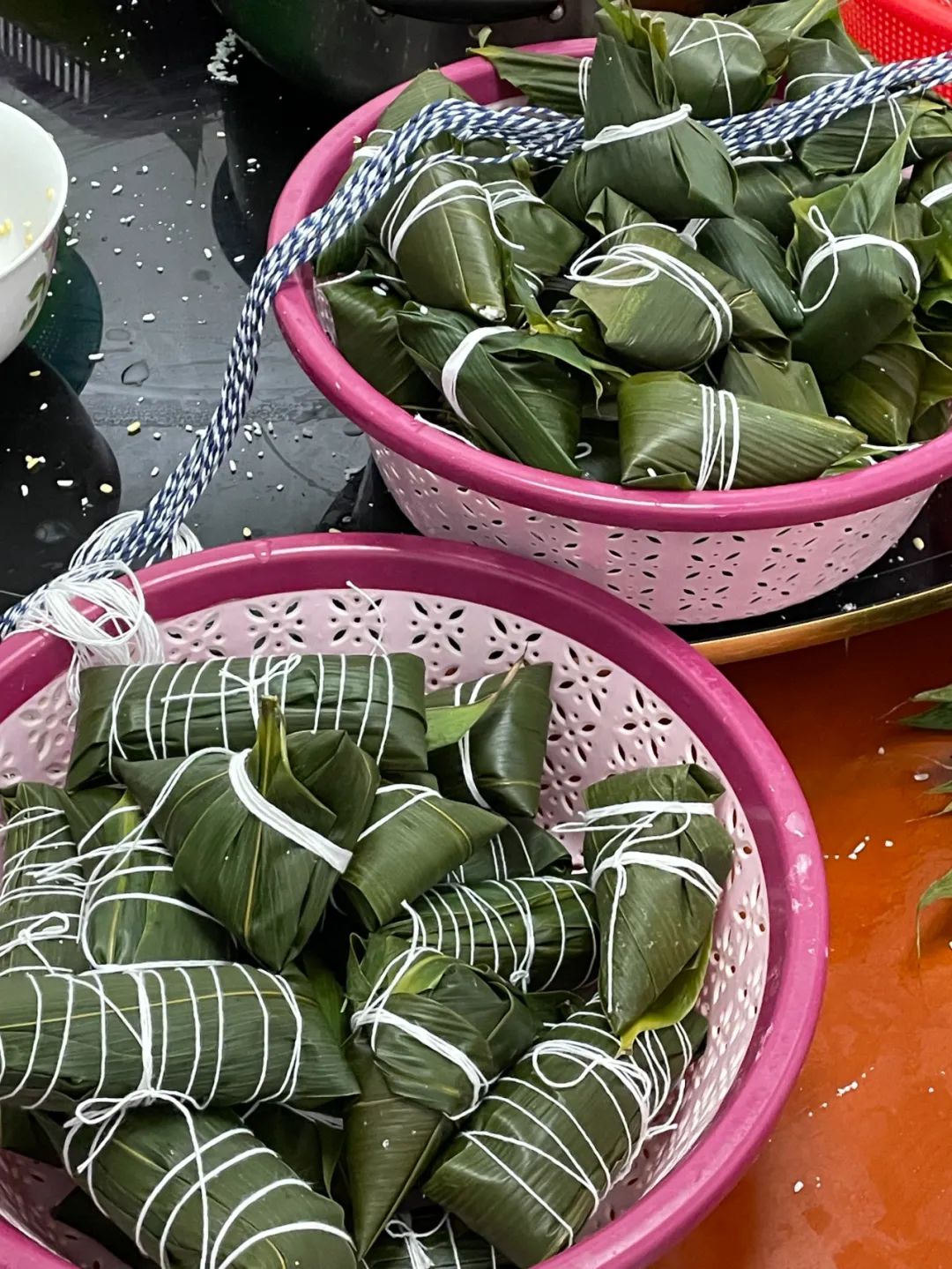 一雙雙平日里飛針走線、巧奪天工的手,此刻同樣靈巧地翻飛在翠綠的粽葉間。無論是嫻熟還是略顯笨拙,包裹進(jìn)去的不僅僅是糯米與餡料,更是同事間互助的情誼和對華裕大家庭濃濃的熱愛。