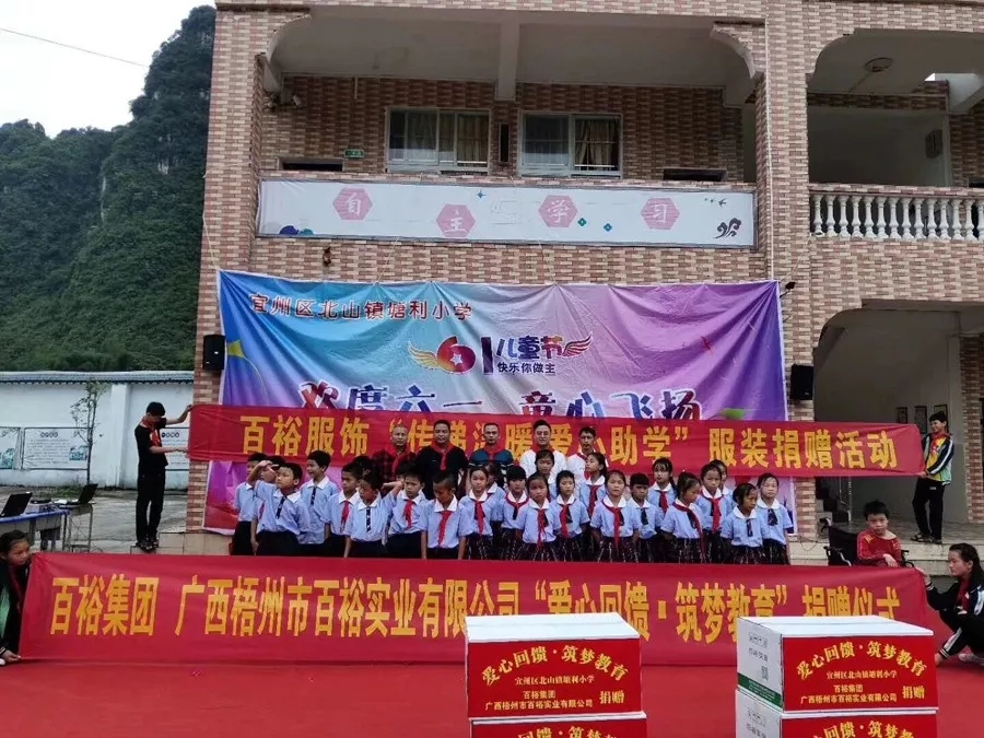 百裕集團(tuán)服務(wù)河池地區(qū)已有6年多,多年來開展了一系列的捐贈(zèng)助學(xué)的公益活動(dòng)。時(shí)值六一兒童節(jié),百裕集團(tuán)不忘初心,兌現(xiàn)“為環(huán)江村屯學(xué)校捐贈(zèng)1106套愛心校服”承諾,并增加圖書等物資捐贈(zèng),在總經(jīng)理林志煌的帶領(lǐng)下,先后走進(jìn)環(huán)江縣10個(gè)鄉(xiāng)14個(gè)村級(jí)小學(xué),惠及1106名小朋友,為孩子們送上節(jié)日的祝福。